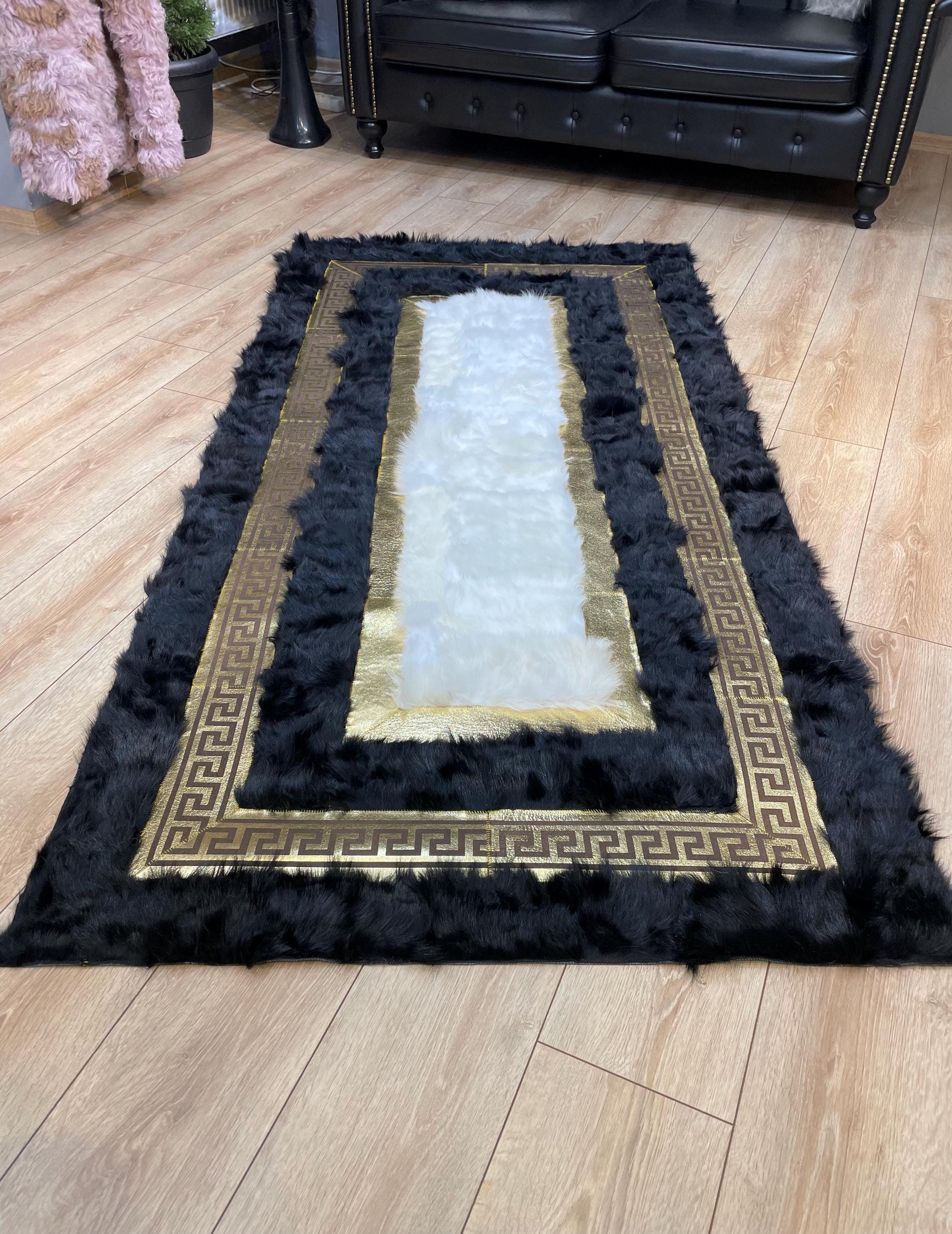 Indulge in luxury with our Black White Real Sheepskin Rug. Handcrafted for ultimate softness, this fluffy shaggy rug adds a touch of elegance to any room. Perfect for enhancing your decor with its unique blend of white and gold tones, it promises both comfort and style. Treat yourself to the plush feel of genuine sheepskin and elevate your space with this luxurious, handmade carpet. Ideal for creating a cozy and sophisticated ambiance in your home. Discover the perfect blend of luxury and comfort with our Black White Sheepskin Rug today!