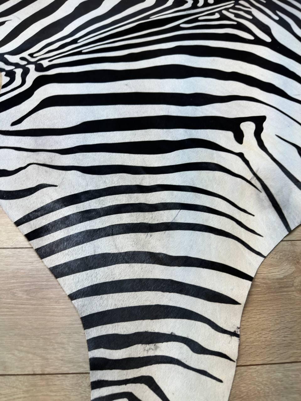 Transform your space with our Genuine Zebra Design Calfskin Leather Rug. This unique calfskin rug combines the exotic allure of zebra patterns with the luxurious texture of genuine leather. Perfect for modern home decoration, it adds a striking focal point to any room. Each special calfskin rug is crafted from speckled Brazilian cowhide, ensuring a one-of-a-kind piece that exudes sophistication and style. Enhance your decor with this distinctive and elegant cowhide rug, ideal for those seeking a bold statement.