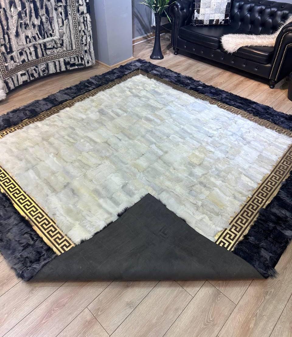Indulge in luxury with our Gray White Real Sheepskin Rug. Handcrafted for ultimate softness, this fluffy shaggy rug adds a touch of elegance to any room. Perfect for enhancing your decor with its unique blend of white and gold tones, it promises both comfort and style. Treat yourself to the plush feel of genuine sheepskin and elevate your space with this luxurious, handmade carpet. Ideal for creating a cozy and sophisticated ambiance in your home. Discover the perfect blend of luxury and comfort with our Black White Sheepskin Rug today!