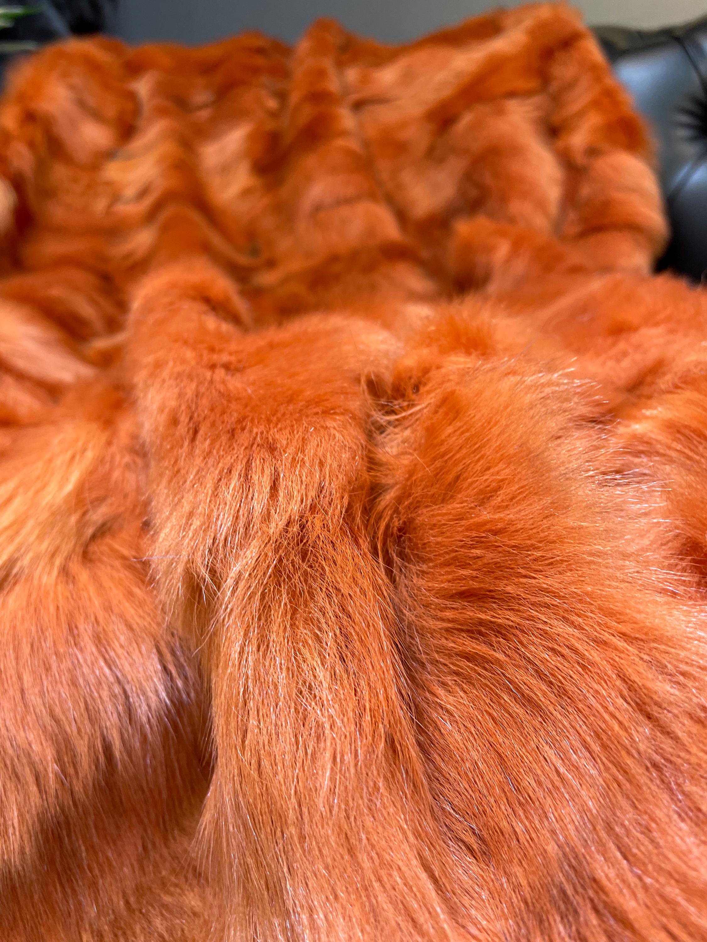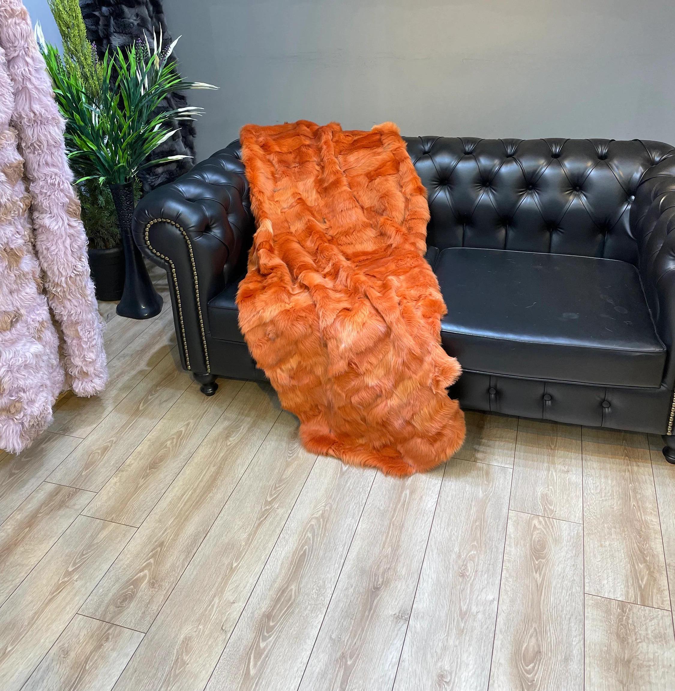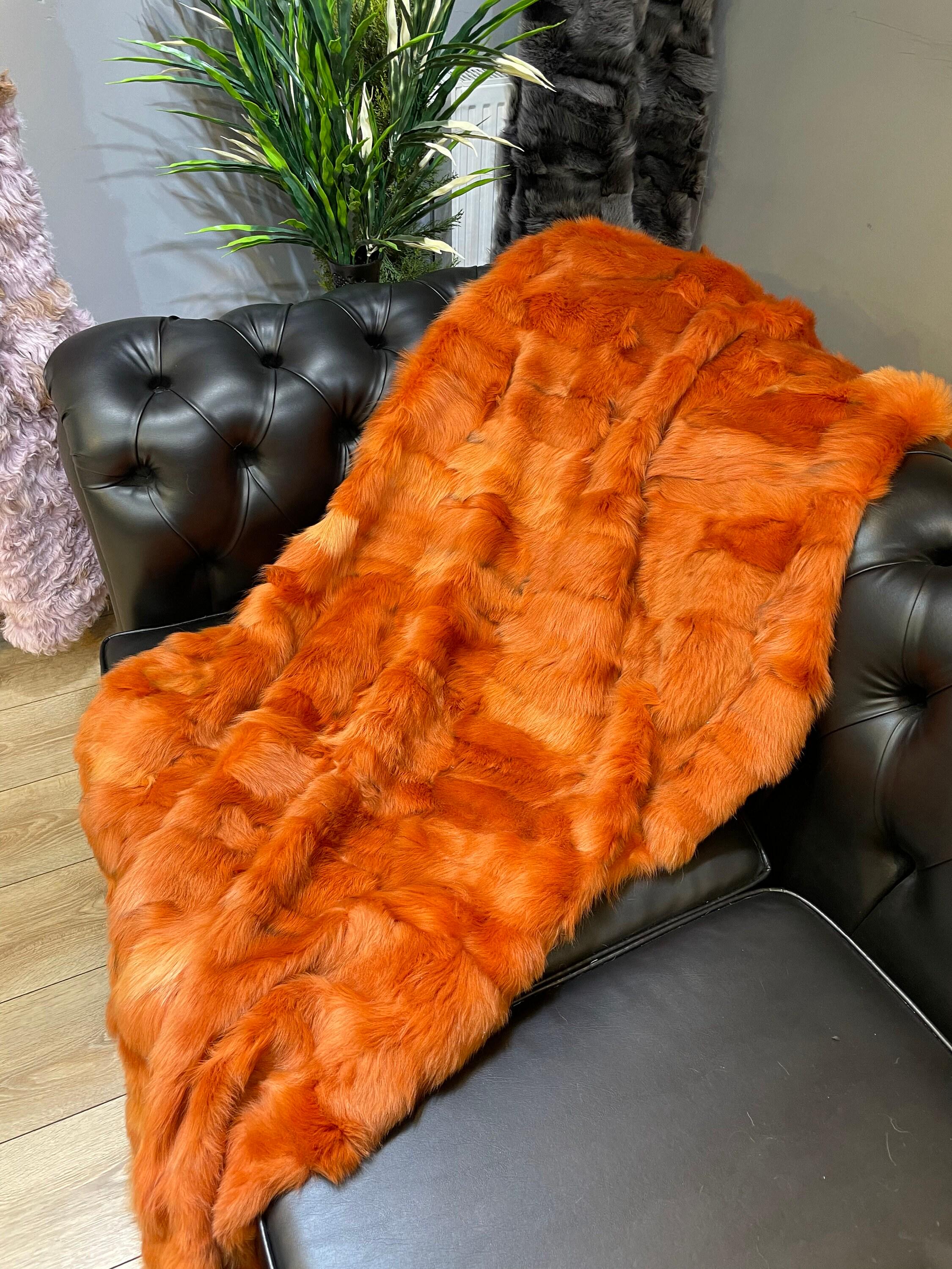 Wrap yourself in luxury with our Orange Sheepskin Fur Fluffy Blanket. Crafted with the finest sheepskin fur, this shaggy blanket offers unmatched softness and warmth. Perfect as a soft bedspread or draped over your sofa, it adds a touch of elegance to any room. Each blanket is handmade with care, making it a truly personalized and unique piece. Indulge in comfort and style with our exquisite sheepskin fur throw, sure to elevate your home decor to new heights of luxury.