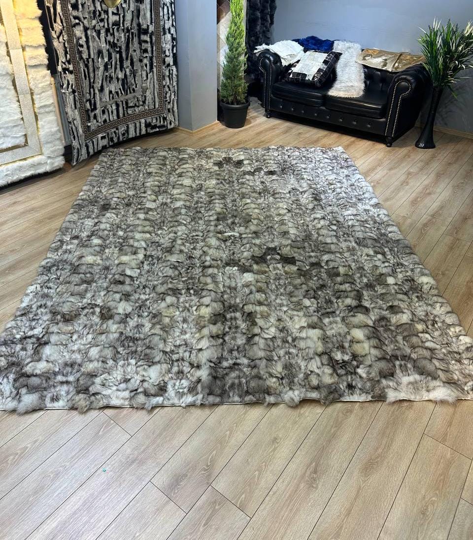Indulge in unparalleled luxury with our exquisite Handmade Genuine 100% Fox Fur Rug, meticulously crafted to elevate any space. Envision the opulence of your living room or bedroom adorned with the sumptuousness of genuine grey fox fur, meticulously patchworked to create a timeless masterpiece. Not just a rug, but a statement of sophistication and elegance, this cozy soft carpet invites unparalleled comfort into your home.