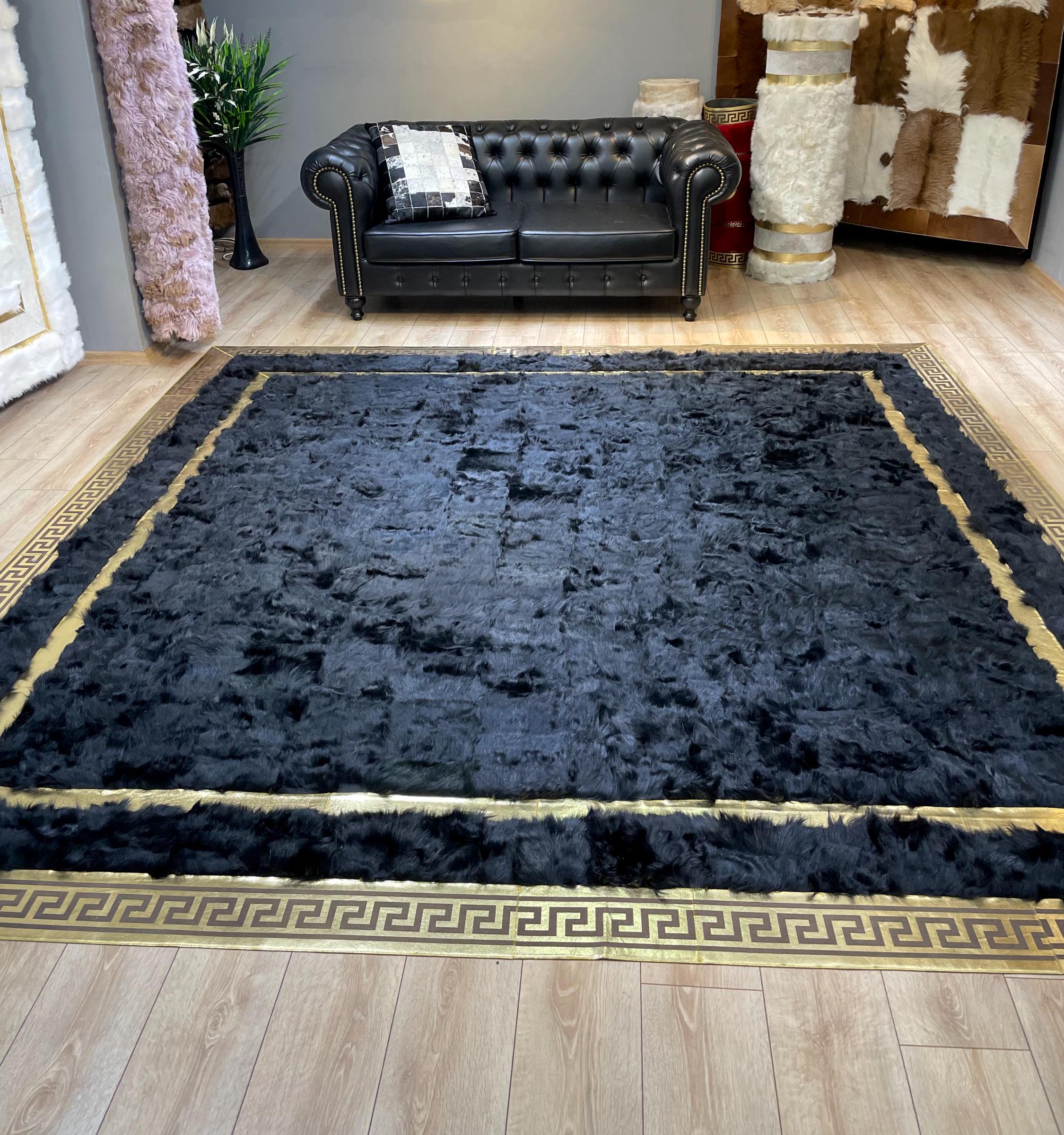 Elevate your space with this Handmade Natural Sheepskin Area Rug, crafted with luxurious hair-on-hide sheepskin. This non-slip rug offers a soft, shaggy texture in stunning black and gold tones, perfect for adding warmth and style to your living room, office, or bedroom. Its unique Western-inspired design complements rustic and modern décor alike. Durable and versatile, this eco-friendly rug is a statement piece that combines elegance and comfort, making it ideal for any space.